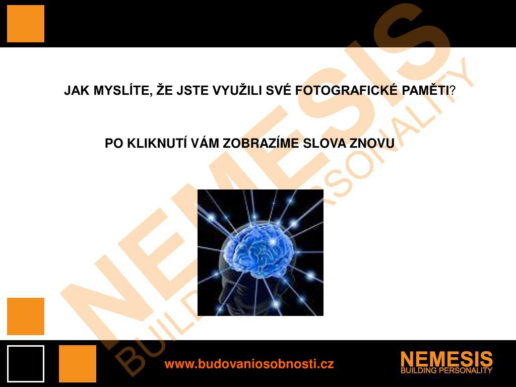 JAK MYSLÍTE, ŽE JSTE VYUŽILI SVÉ FOTOGRAFICKÉ PAMĚTI? PO KLIKNUTÍ VÁM ZOBRAZÍME SLOVA ZNOVU www.budovaniosobnosti.cz