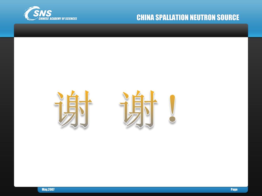 小结 • CSNS第一期三台中子谱仪的中子探测器设计工作基本完成 • 高通量粉末衍射仪 3He管阵列 (1’ 和 1/2’) • 小角衍射仪 3He管阵列 ( 1/3’和 1/2’) • 多功能反射仪 多丝正比室 • 中子束监测器 透过式电离室或基于GEM的中子束监测器 • 通过示波器观测到(3He管+前放)的信号,下一步可以进行性能测量,组建3He管阵列; • 利用55Fe测试了多丝正比室的性能,并观测了中子信号;