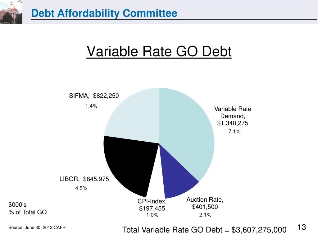 Variable Rate GO Debt 1.4% 7.1% 4.5% $000’s % of Total GO 1.0% 2.1% Source: June 30, 2012 CAFR Total Variable Rate GO Debt = $3,607,275,000