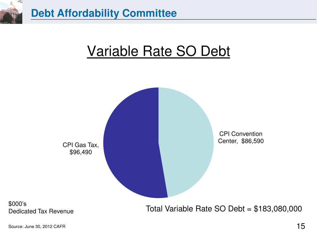 Variable Rate SO Debt $000’s Dedicated Tax Revenue Total Variable Rate SO Debt = $183,080,000 Source: June 30, 2012 CAFR