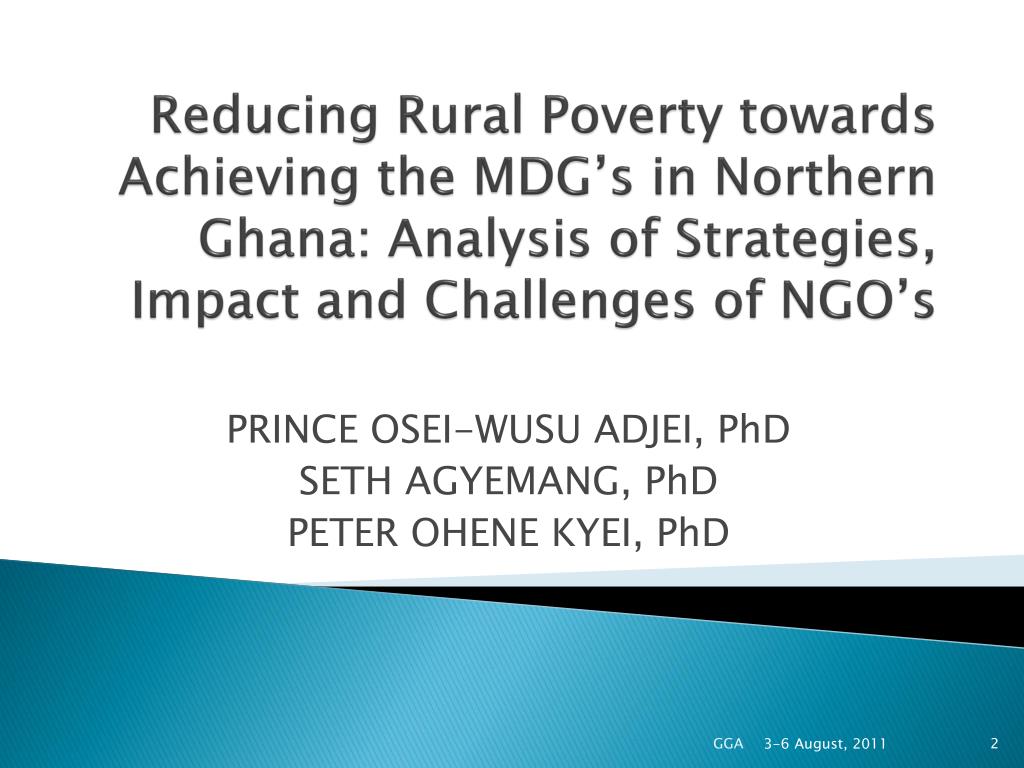 Reducing Rural Poverty towards Achieving the MDG’s in Northern Ghana: Analysis of Strategies, Impact and Challenges of NGO’s PRINCE OSEI-WUSU ADJEI, PhD SETH AGYEMANG, PhD PETER OHENE KYEI, PhD GGA