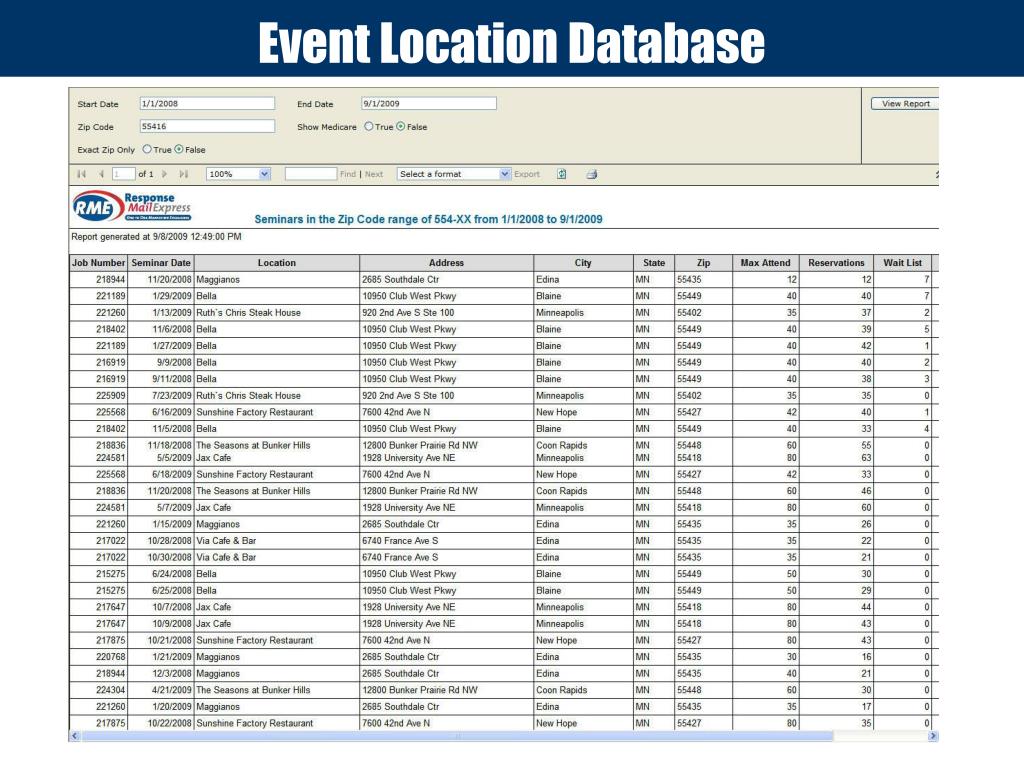 Seminar Best Practices Consultation Years of Feedback, Case Studies and Top Producer Best Practices! • 30 Minute Consultation: (25 Consultants) • Neighborhood Marketing Concept • Prospects Continue to attend even after 13 years! • Best and Worst Practices • Neutral Site Selection: Hotel, Library, Restaurant • Best Locations Data • Why Meals? Report Viewer • 4:00pm or 4:30pm and 6:30pm • 3 Dates: Tuesdays, Wednesdays & Thursdays • Invitations vs. Ads • Live RSVP vs. Recording • Mailing List Accuracy and Deliverability • Postal Delivery Process (RME Drop-Ship Program)