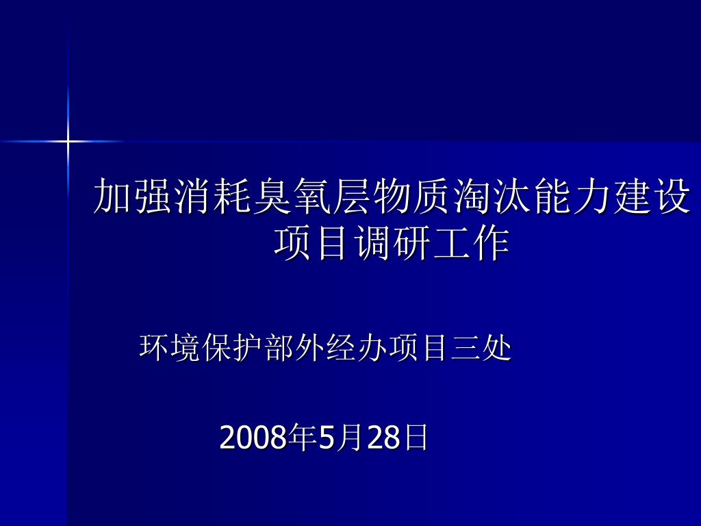 加强消耗臭氧层物质淘汰能力建设项目调研工作加强消耗臭氧层物质淘汰能力建设项目调研工作 环境保护部外经办项目三处 2008年5月28日