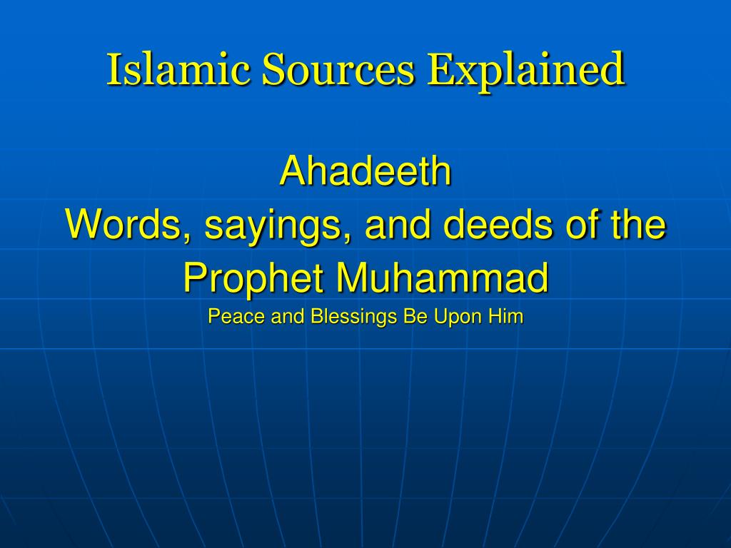 Islamic Sources Explained Ahadeeth Words, sayings, and deeds of the Prophet Muhammad Peace and Blessings Be Upon Him