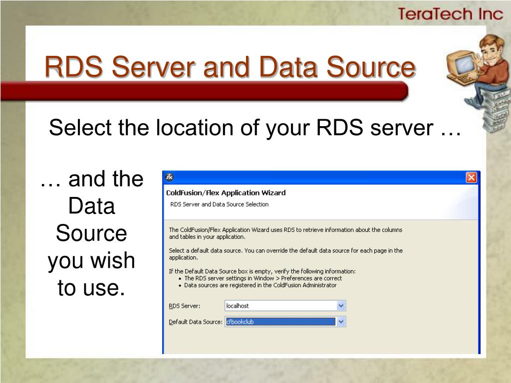 RDS Server and Data Source Select the location of your RDS server … … and the Data Source you wish to use.