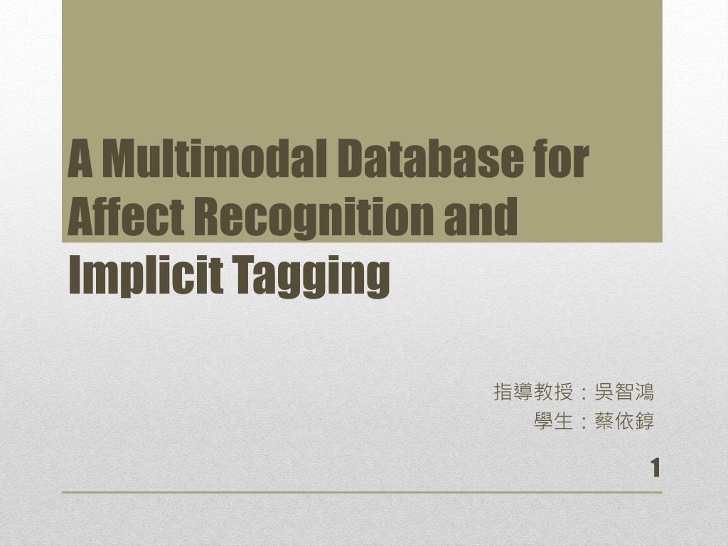 A Multimodal Database for Affect Recognition and Implicit Tagging. 指導教授:吳智鴻 學生:蔡依錞. MAHNOB-HCI 是 一個多 模式紀錄資料庫, 可以同步響應目標情感辨識以及隱藏式標籤研究。 http ://ibug.doc.ic.ac.uk/resources/mahnob-hci-tagging-database/