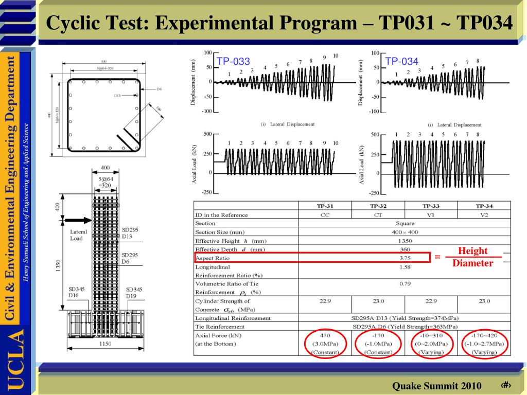 Cyclic Test: Experimental Program – TP031 ~ TP034 TP-033 TP-034 Height Diameter =