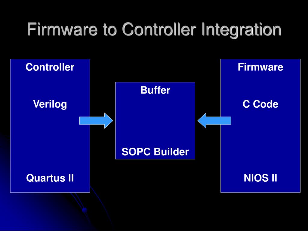 Firmware to Controller Integration Controller Verilog Quartus II Firmware C Code NIOS II Buffer SOPC Builder