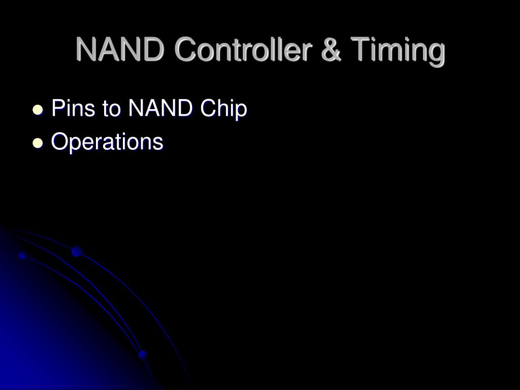 NAND Controller & Timing • Pins to NAND Chip • Operations