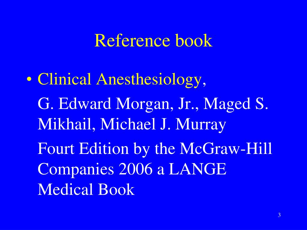 Reference book • Clinical Anesthesiology, G. Edward Morgan, Jr., Maged S. Mikhail, Michael J. Murray Fourt Edition by the McGraw-Hill Companies 2006 a LANGE Medical Book