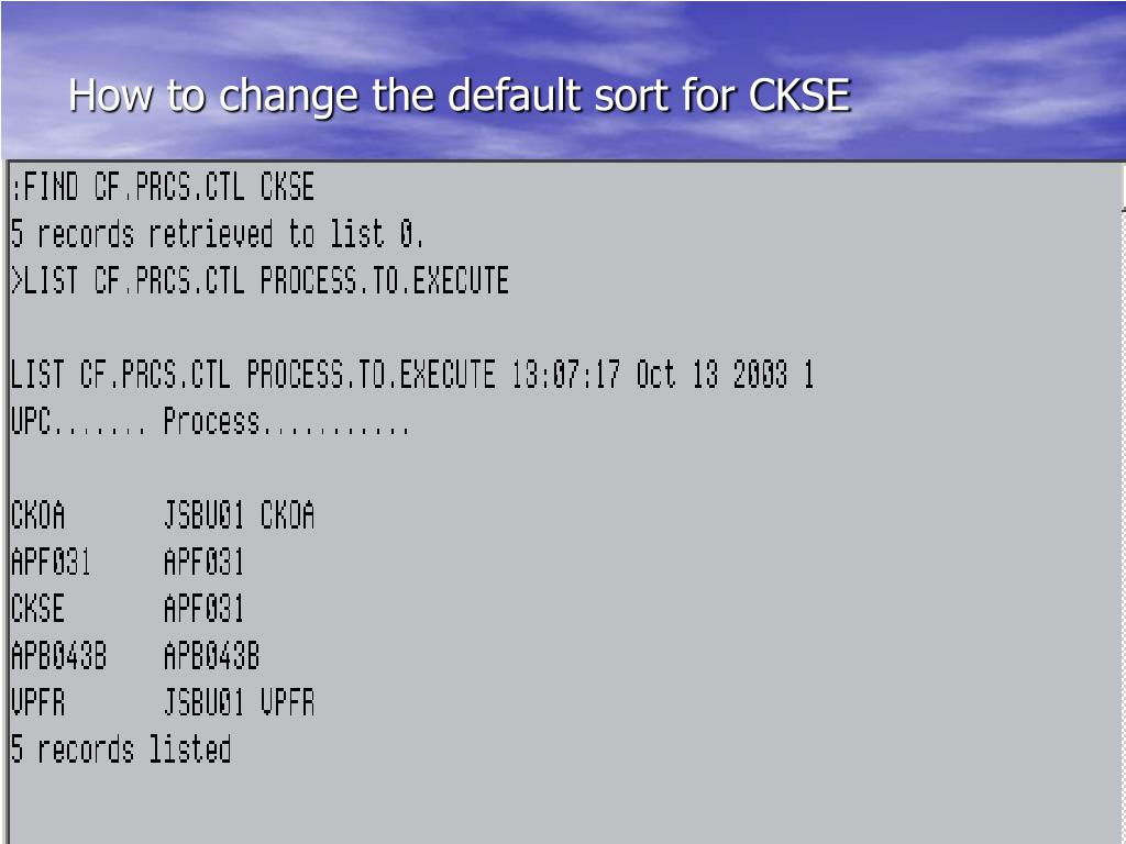 How to change the default sort for CKSE – cont.Line 7 below is PROCESS.TO.EXECUTE