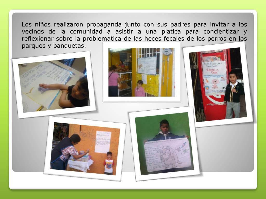 Los niños realizaron propaganda junto con sus padres para invitar a los vecinos de la comunidad a asistir a una platica para concientizar y reflexionar sobre la problemática de las heces fecales de los perros en los parques y banquetas.