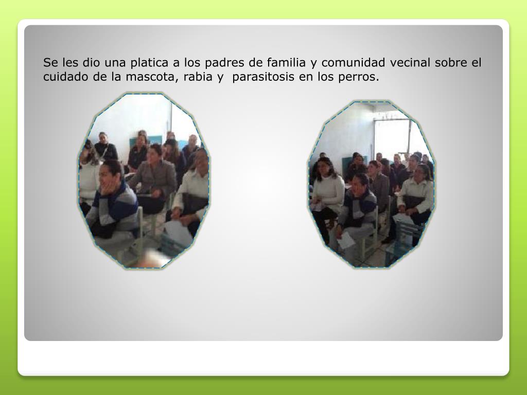 Se les dio una platica a los padres de familia y comunidad vecinal sobre el cuidado de la mascota, rabia y parasitosis en los perros.