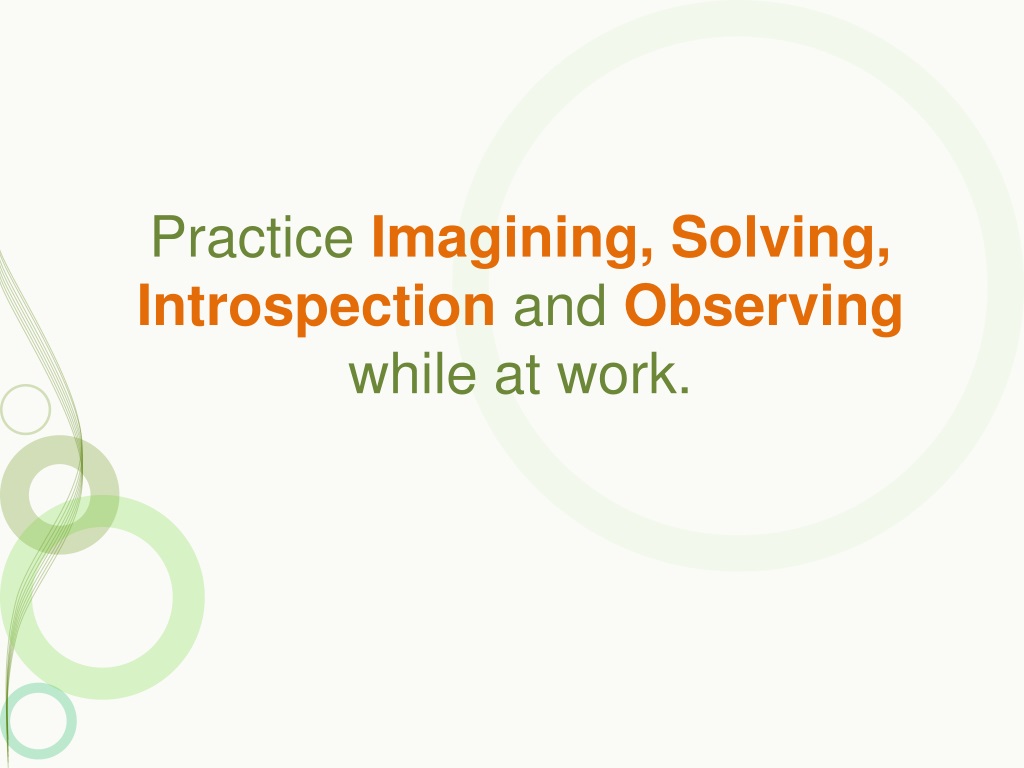 Practice Imagining, Solving, Introspection and Observing while at work.