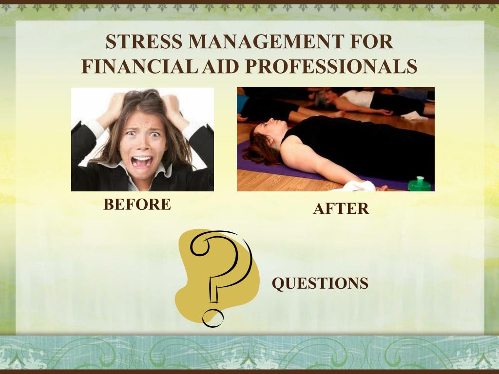 STRESS MANAGEMENT FOR FINANCIAL AID PROFESSIONALS BEFORE AFTER QUESTIONS