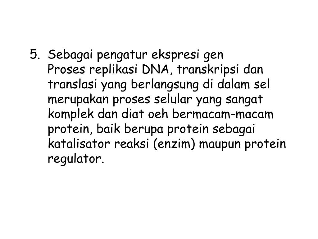 Sebagaipengaturekspresi gen Prosesreplikasi DNA, transkripsidantranslasi yang berlangsungdidalamselmerupakanprosesselular yang sangatkomplekdandiatoehbermacam-macam protein, baikberupa protein sebagaikatalisatorreaksi (enzim) maupun protein regulator.
