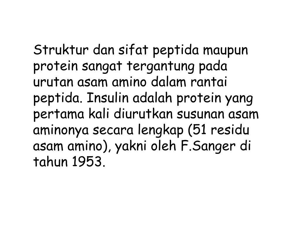 Strukturdansifatpeptidamaupun protein sangattergantungpadaurutanasam amino dalamrantaipeptida. Insulin adalah protein yang pertama kali diurutkansusunanasamaminonyasecaralengkap (51 residuasam amino), yakniolehF.Sangerditahun 1953.