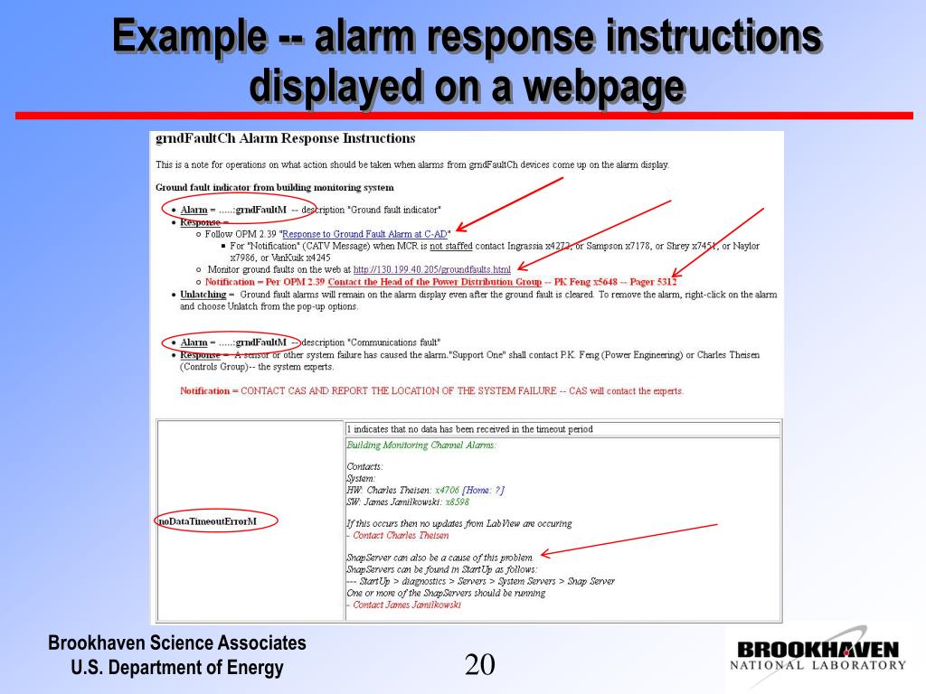 Example -- alarm response instructions displayed on a webpage