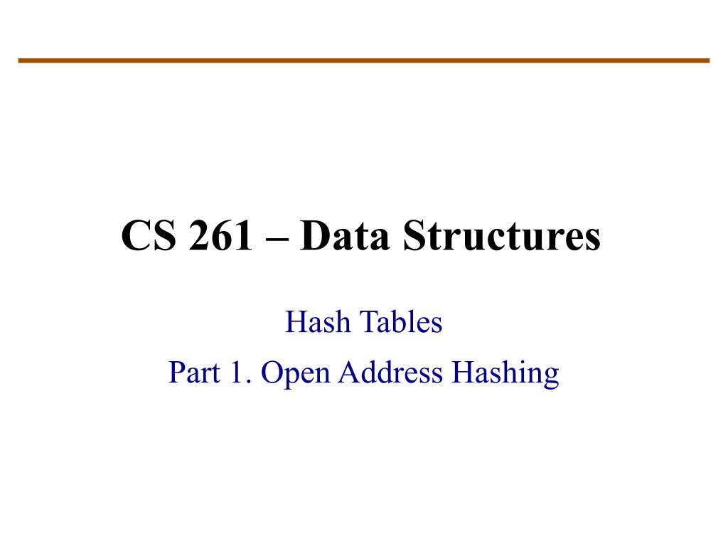CS 261 – Data Structures Hash Tables Part 1. Open Address Hashing