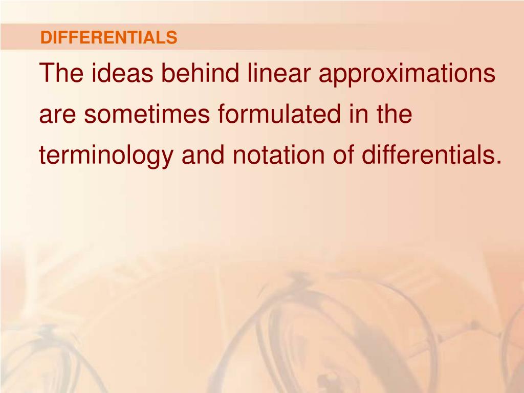 DIFFERENTIALS • The ideas behind linear approximations are sometimes formulated in the terminology and notation of differentials.