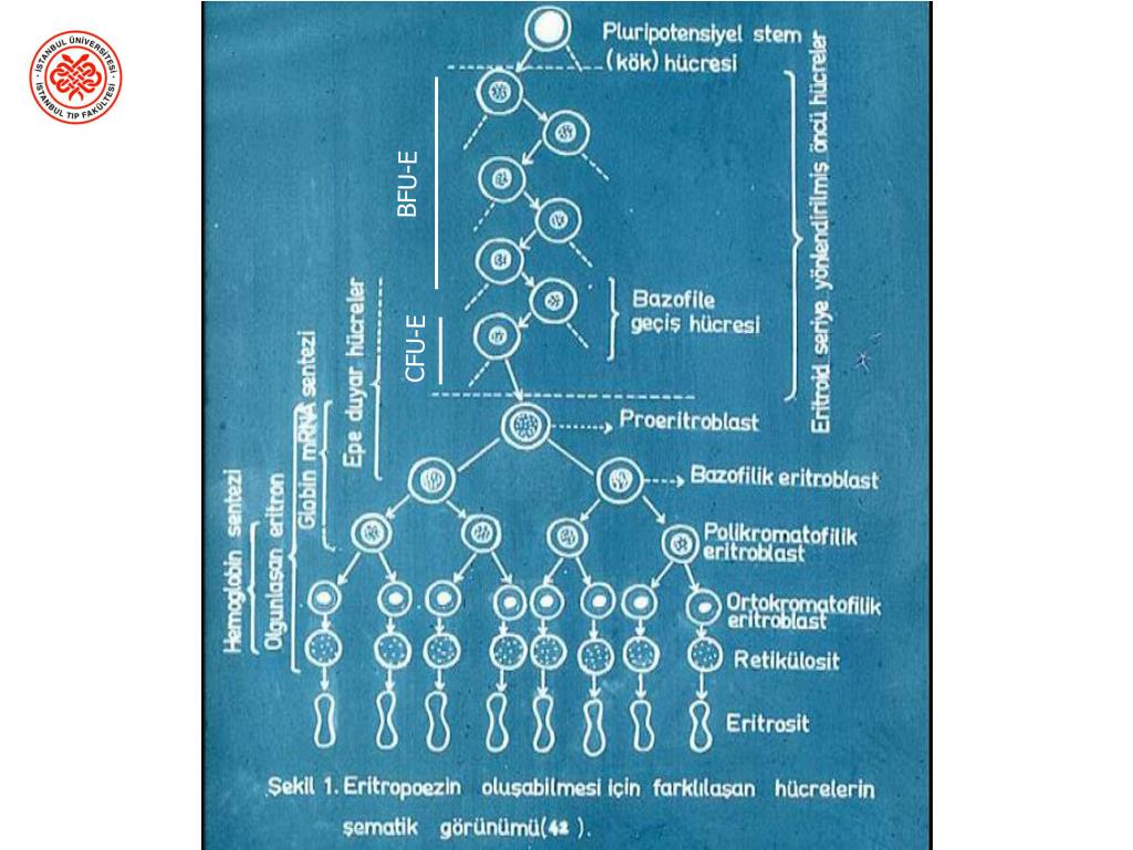 BFU-E CFU-E Eritrositlerin yapımı, kaynağını yüksekten alan ve giderek artan bir şelaleye benzetebiliriz.