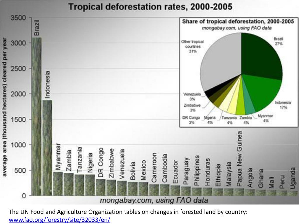 The UN Food and Agriculture Organization tables on changes in forested land by country: www.fao.org/forestry/site/32033/en/ The UN Food and Agriculture Organization tables on changes in forested land by country: www.fao.org/forestry/site/32033/en/