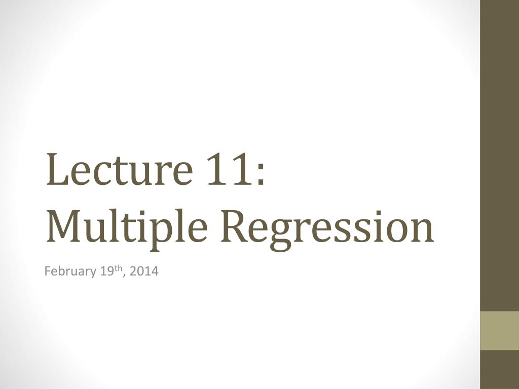 Lecture 11: Multiple Regression. February 19 th , 2014. Question. Assuming there is no curve on the exam, how do you think you scored? (it was out of 100 excluding the bonus) 90 or higher 80-89 70-79 60-69 59 or lower. Administrative. Exam 1 Results soon… Homework 5 Due Monday