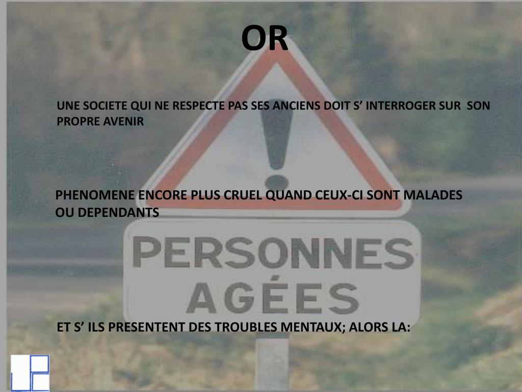 OR UNE SOCIETE QUI NE RESPECTE PAS SES ANCIENS DOIT S’ INTERROGER SUR SON PROPRE AVENIR PHENOMENE ENCORE PLUS CRUEL QUAND CEUX-CI SONT MALADES OU DEPENDANTS ET S’ ILS PRESENTENT DES TROUBLES MENTAUX; ALORS LA: