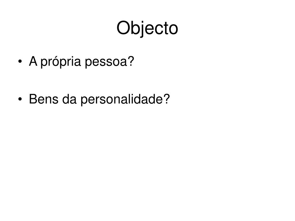 Objecto • A própria pessoa? • Bens da personalidade?