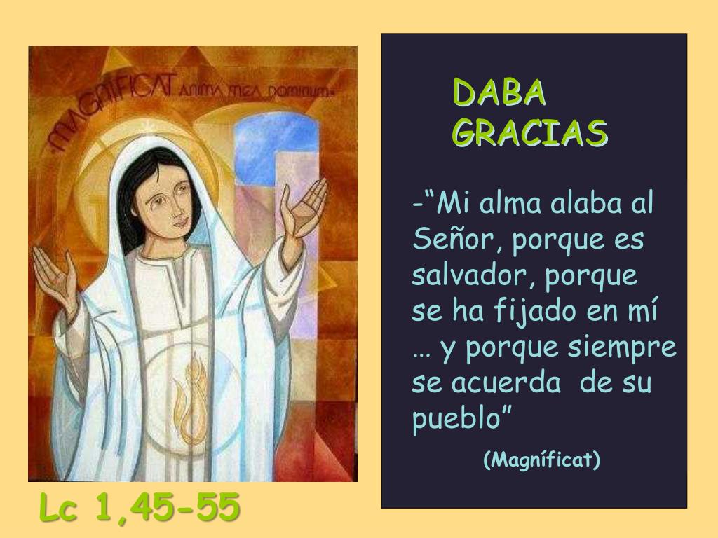 DABA GRACIAS • “Mi alma alaba al Señor, porque es salvador, porque se ha fijado en mí … y porque siempre se acuerda de su pueblo” • (Magníficat) y lo hacía con cantos de alabanza como el “Magníficat” Lc1,45-55