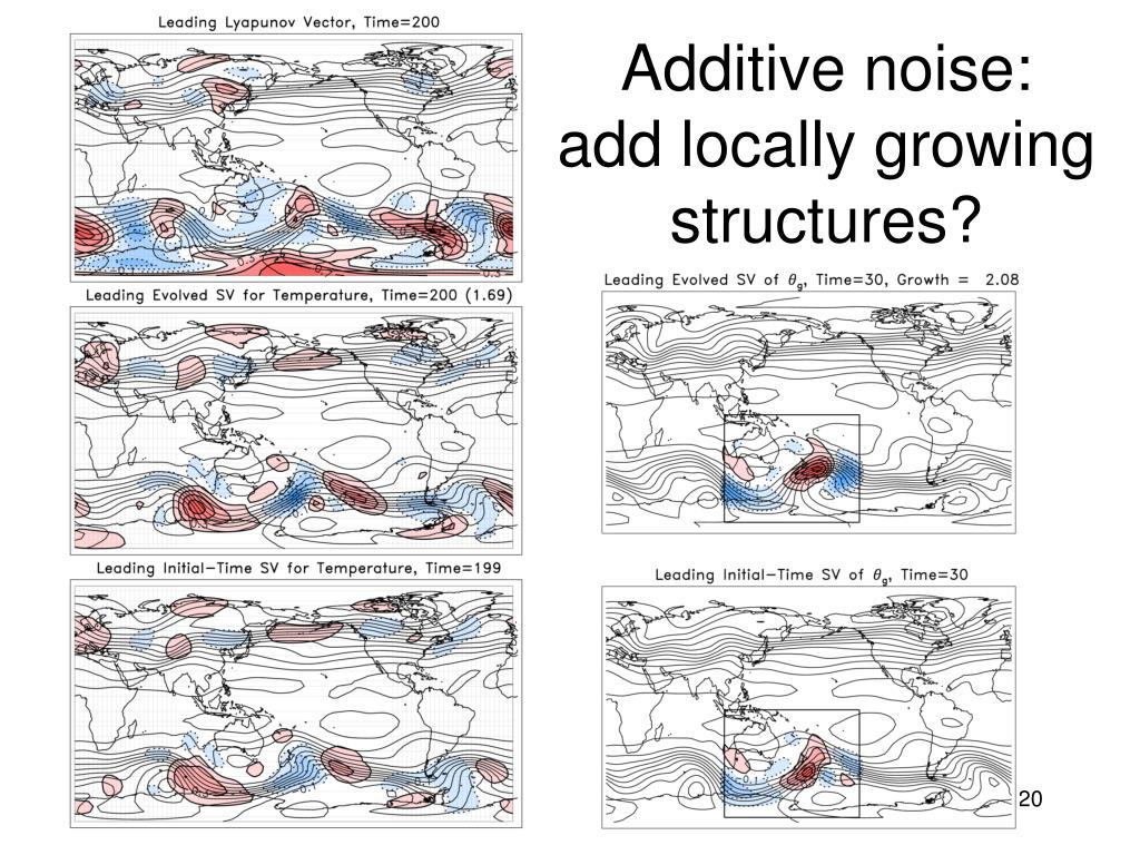 Additive noise Before additive noise: ensembles tend to lie on lower-dimensional attractor After additive noise: some of the noise added takes model states off attractor; resulting transient adjustment