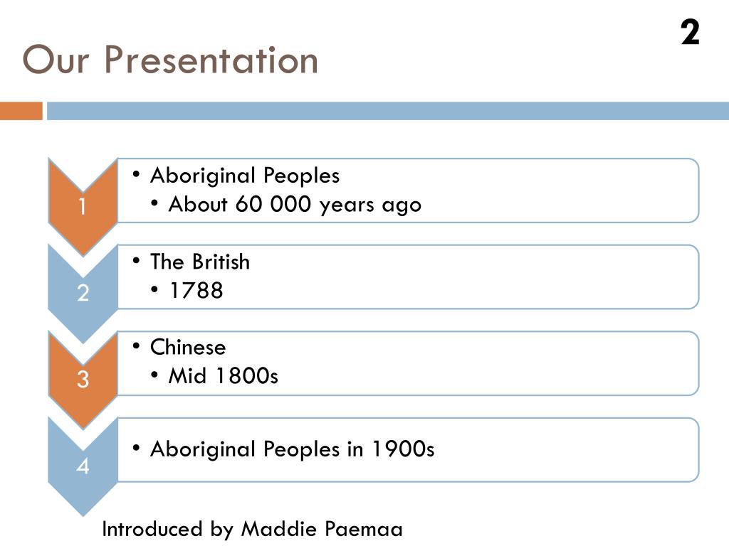 Australian History A story of migration Part 1 Around 60 000 years ago - 1900. Asquith Girls High School . Our Presentation . Introduced by Maddie Paemaa. Australian Aboriginal Peoples. Sarita K haral. Scientific theories: . Generally agreed Aborigines arrived around 65 000 years