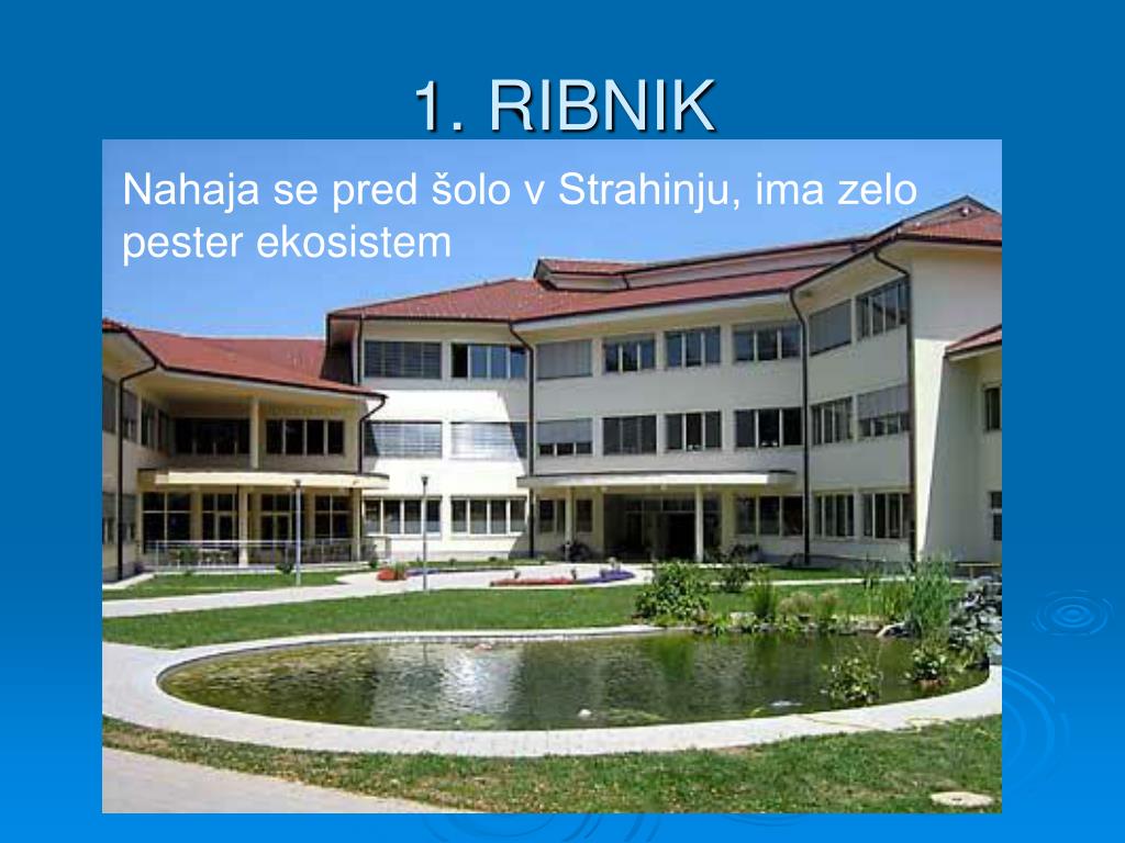 1. RIBNIK Nahaja se pred šolo v Strahinju, ima zelo pester ekosistem