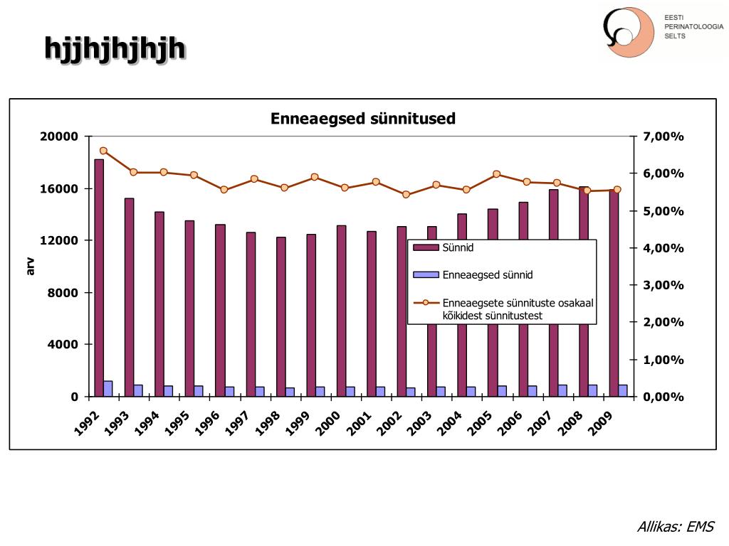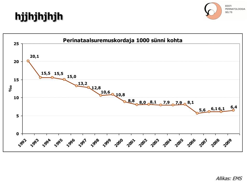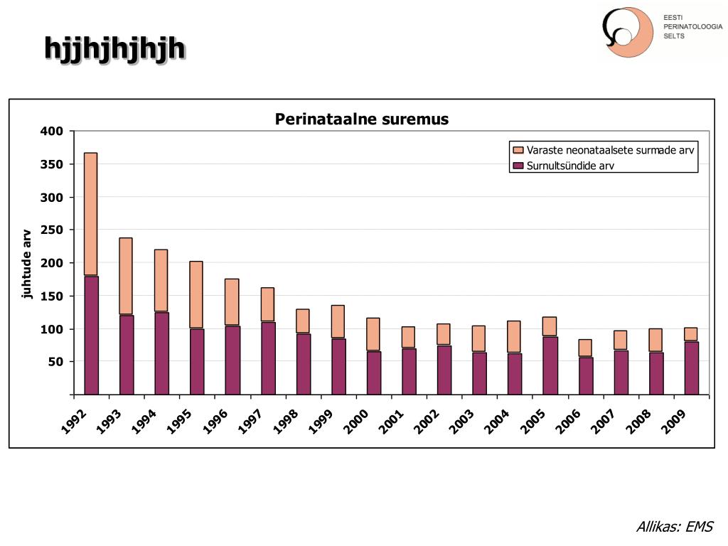 Eesti perinataalmeditsiin. EESTI PERINATOLOOGIA SELTSI JUUBELIKONVERENTS 10.-11. detsember, 2010 Tartu Ülikooli raamatukogu konverentsisaal, TARTU. Pille Andresson Kadri Palo. hjjhjhjhjh. Elanike arv: 1 340 021 (1.01.2010). 1000 või enam sündi aastas. 500-999 sündi aastas. 1995.