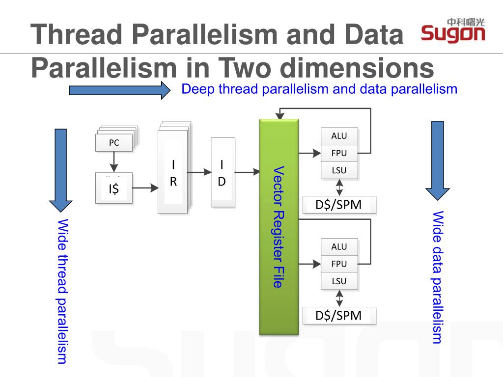 Thread Parallelism and DataParallelism in Two dimensions Deep thread parallelism and data parallelism Vector Register File IR RF ID I$ D$/SPM Wide data parallelism Wide thread parallelism IR RF ID I$ D$/SPM