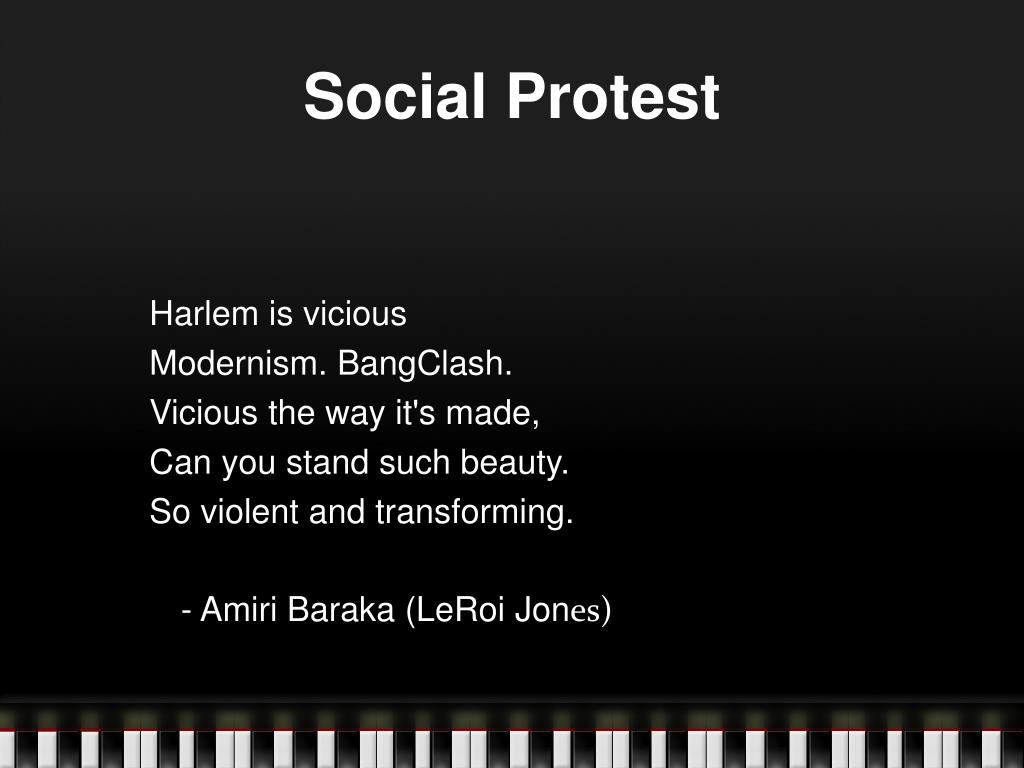 Social Protest Harlem is vicious Modernism. BangClash. Vicious the way it's made, Can you stand such beauty. So violent and transforming. - Amiri Baraka (LeRoi Jones)