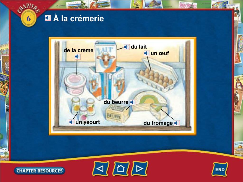 À la crémerie du lait de la crème un œuf du beurre un yaourt du fromage