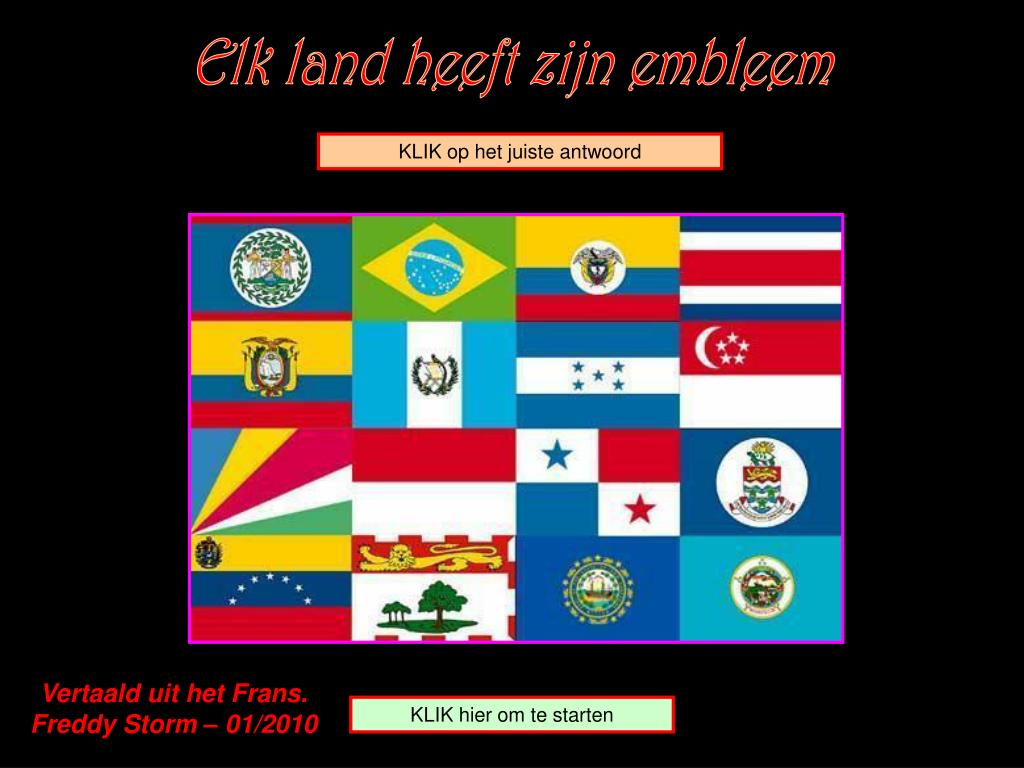 Elk land heeft zijn embleem KLIK op het juiste antwoord Vertaald uit het Frans. Freddy Storm – 01/2010 KLIK hier om te starten