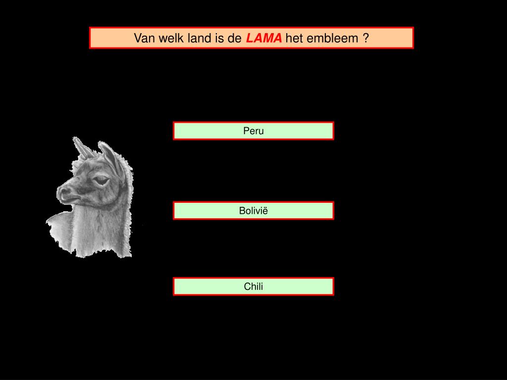 Van welk land is de LAMA het embleem ? Peru Bolivië Chili
