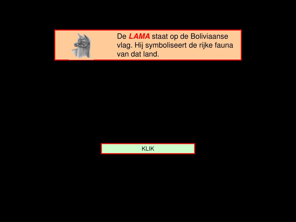 De LAMA staat op de Boliviaanse vlag. Hij symboliseert de rijke fauna van dat land. KLIK