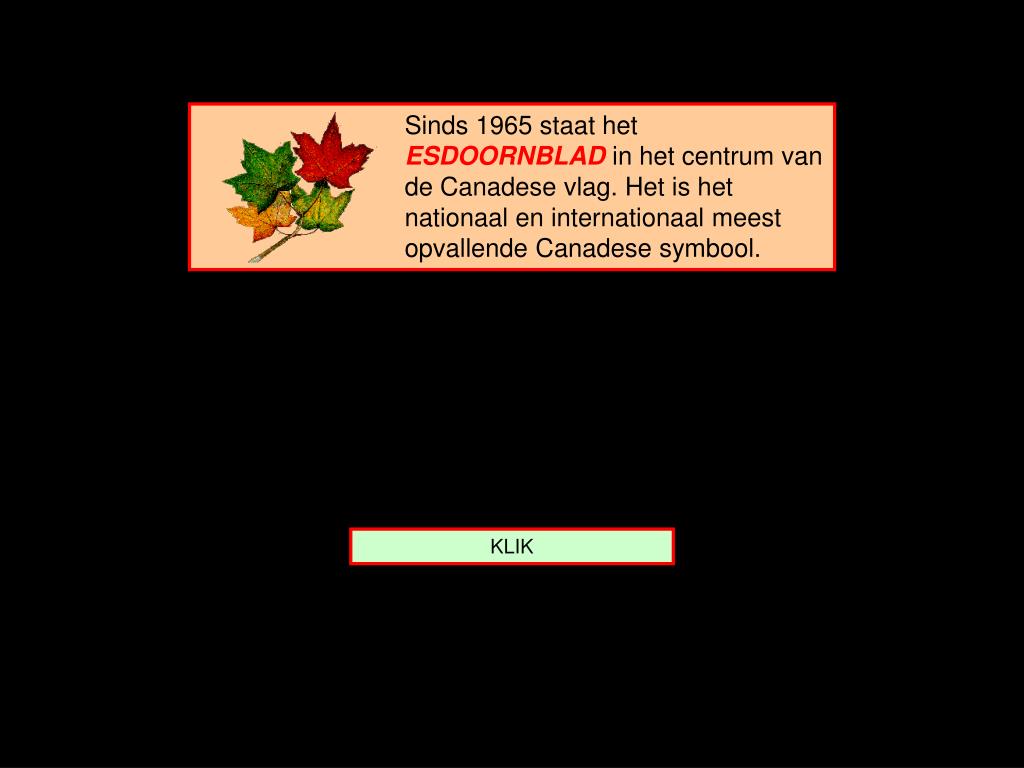Sinds 1965 staat het ESDOORNBLAD in het centrum van de Canadese vlag. Het is het nationaal en internationaal meest opvallende Canadese symbool. KLIK