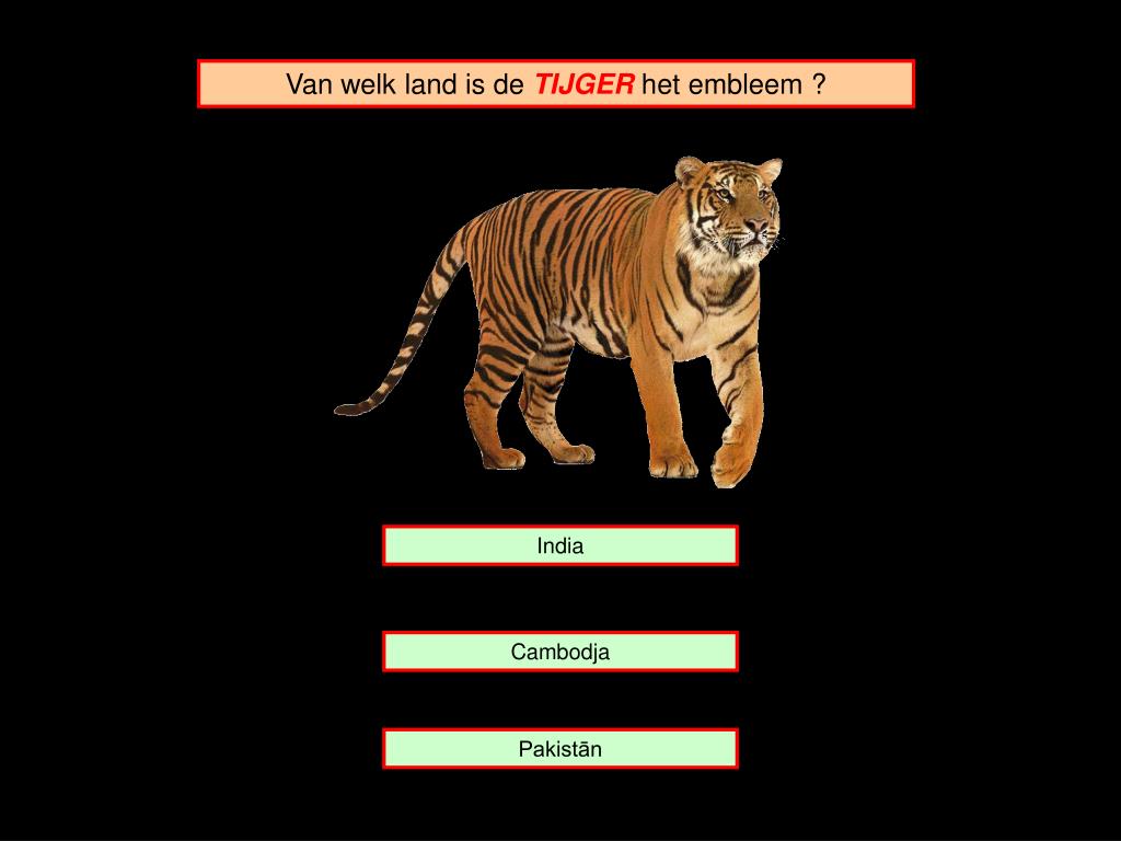 Van welk land is de TIJGER het embleem ? India Cambodja Pakistān