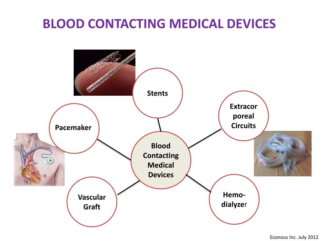 BLOOD CONTACTING MEDICAL DEVICES Stents Extracorporeal Circuits P Pacemaker Blood Contacting Medical Devices Hemo-dialyzer Vascular Graft Econous Inc. July 2012