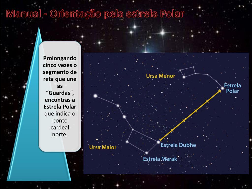 Manual - Orientação pela estrela Polar N Para encontrares o norte podes utilizar, todo o ano, a Estrela Polar, que faz parte da constelação da Ursa Menor.