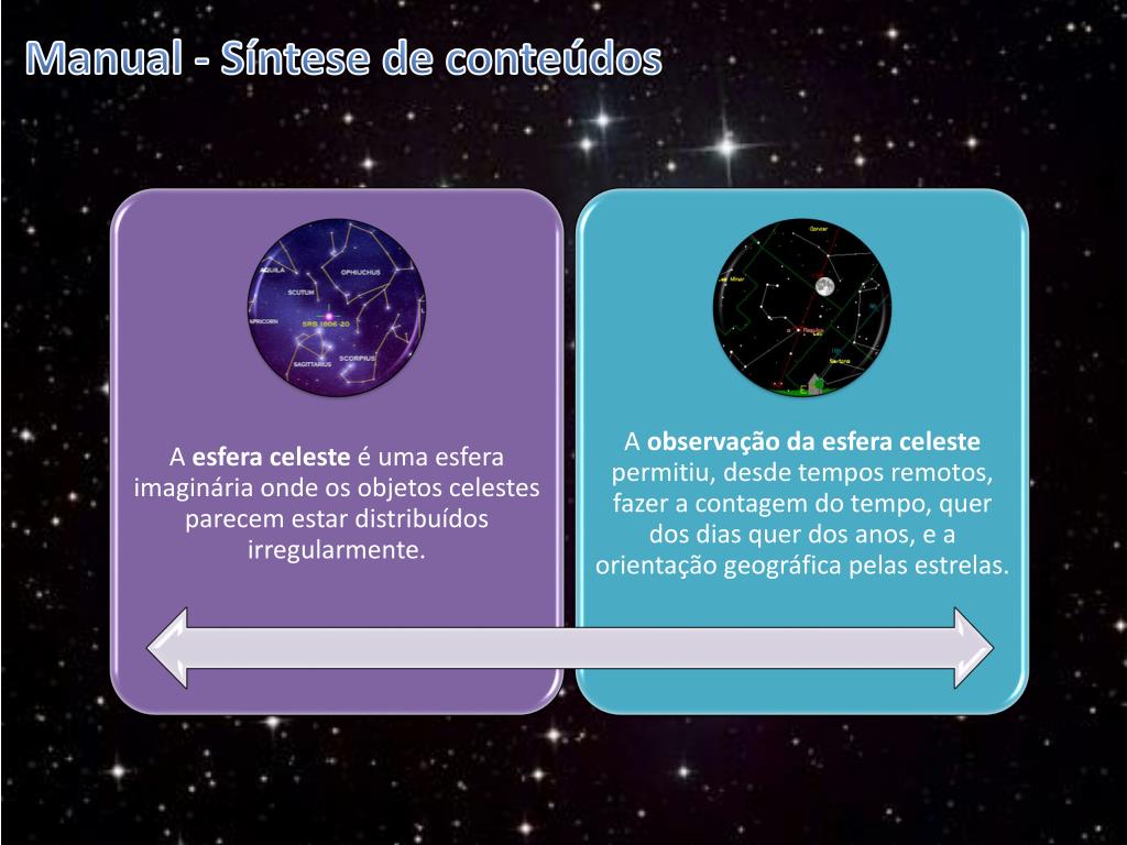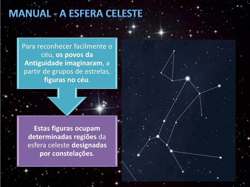 Vídeo ABC da Astronomia Constelações. O Universo. A esfera celeste e a orientação pelas estrelas. Manual - A esfera celeste. Manual - A esfera celeste. Manual - A esfera celeste. Manual - A esfera celeste. Manual - A esfera celeste.
