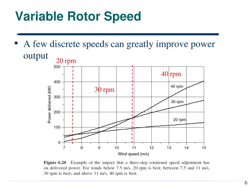 Variable Rotor Speed • A few discrete speeds can greatly improve power output 20 rpm 40 rpm 30 rpm