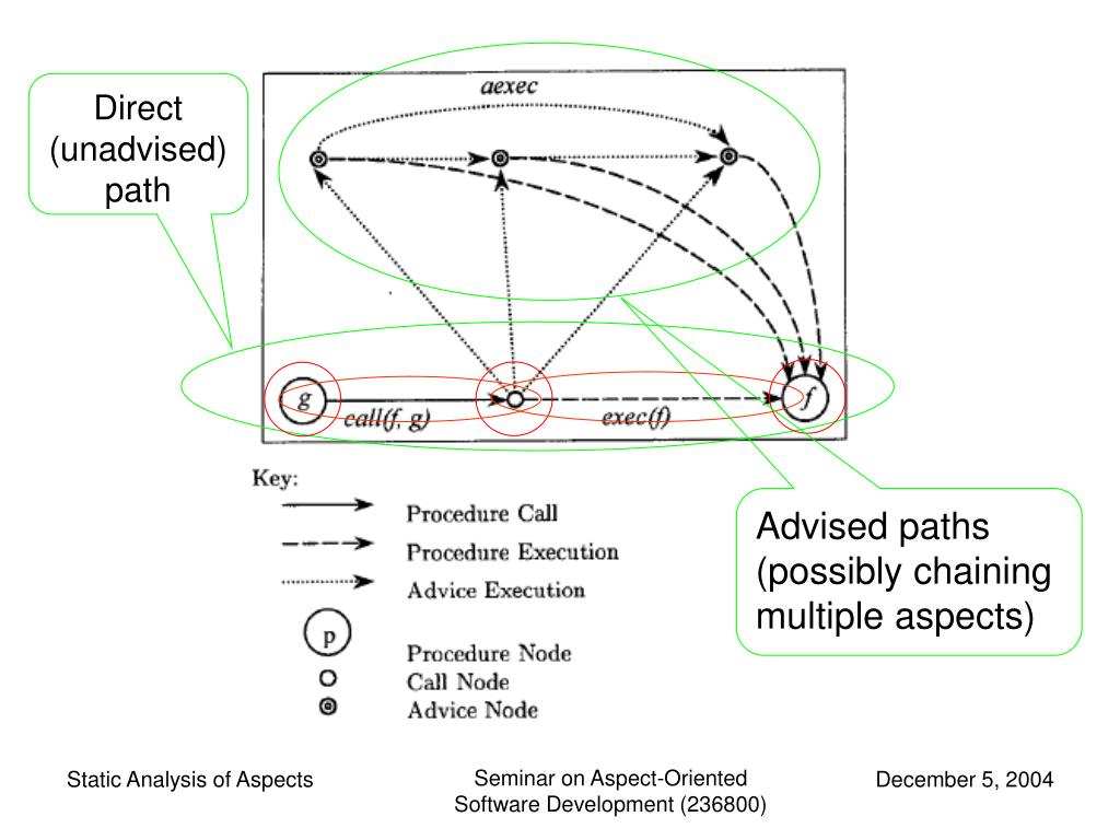 Direct (unadvised) path Advised paths (possibly chaining multiple aspects) Static Analysis of Aspects