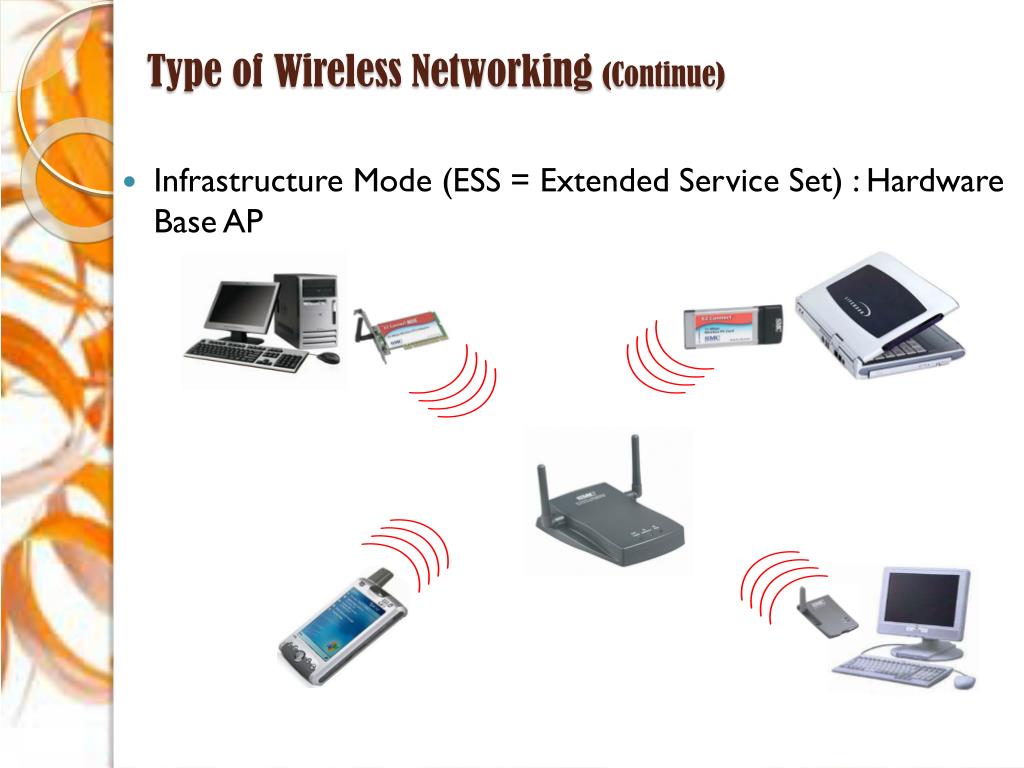 Infrastructure Mode (ESS = Extended Service Set) : Hardware Base AP Type of Wireless Networking (Continue)