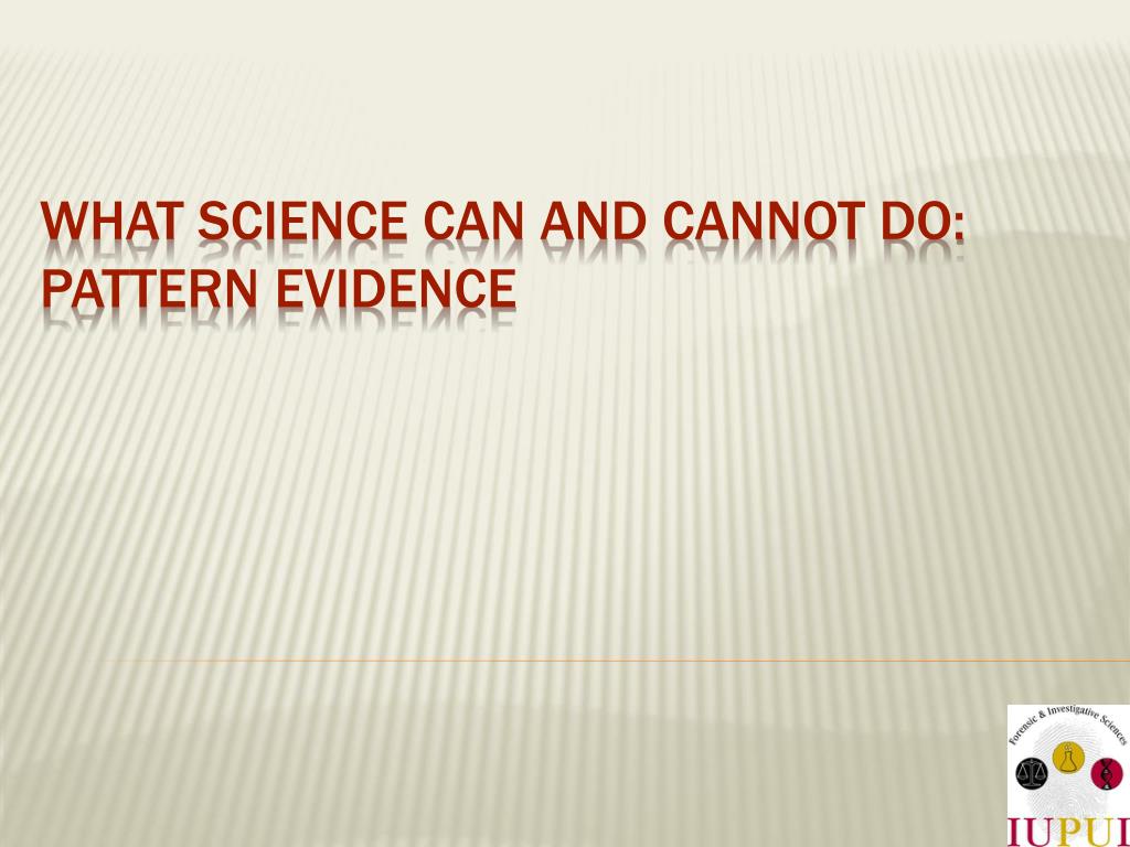 Individuality of pattern evidence is not proven and cannot be. It is not a scientific concept Examiners should use probabilistic conclusions Error rates need to be determined for pattern evidence Bias must be recognized and minimized as it is throughout science Summary