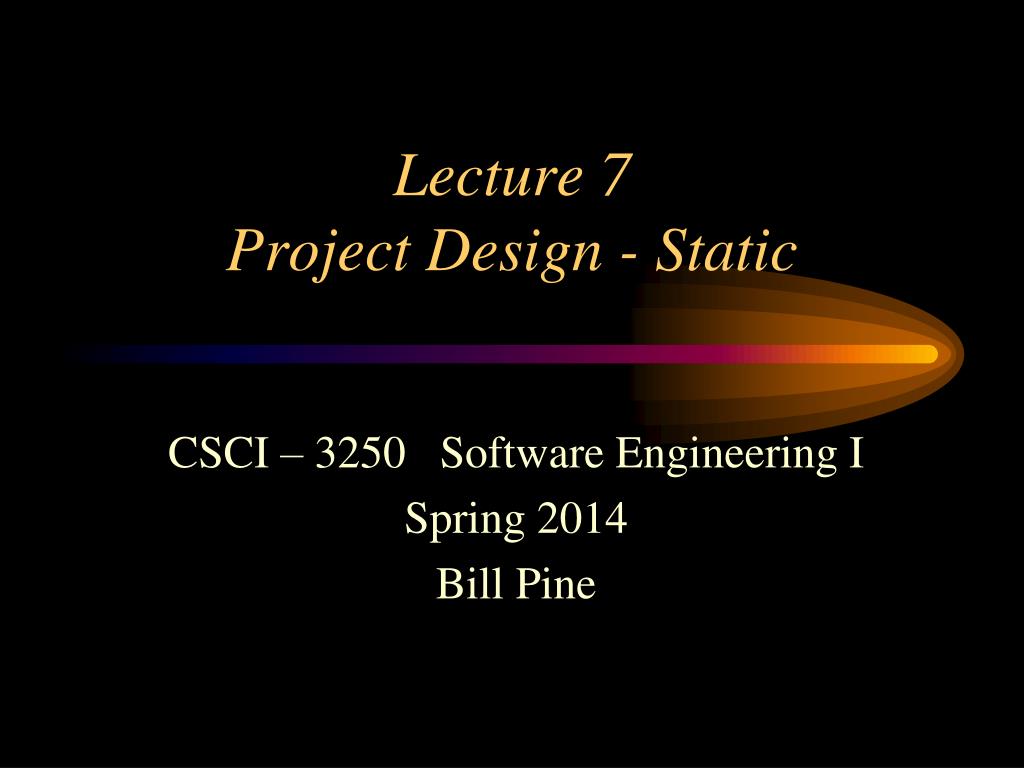 Lecture 7Project Design - Static CSCI – 3250 Software Engineering I Spring 2014 Bill Pine